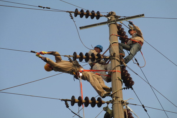 6月13日,公司集中力量,更新改造了青口鹽場(chǎng)6.7公里的35KV高壓線路,正式啟動(dòng)青口供電所主變?cè)鋈莞脑旃こ獭?/DIV> 該工程本需停電施工2天,為盡可能地縮短施工停電時(shí)間、方便用戶(hù),公司事前多次組織人員現(xiàn)場(chǎng)勘察論證,編制施工方案,召開(kāi)施工專(zhuān)題會(huì)議,提前到現(xiàn)場(chǎng)進(jìn)行技術(shù)交底。施工當(dāng)天,公司組織灌西、徐圩、臺(tái)北、臺(tái)南、青口等五個(gè)供電所150職工,參與大會(huì)戰(zhàn);清晨天剛放亮,公司領(lǐng)導(dǎo)和參戰(zhàn)職工就已趕到施工現(xiàn)場(chǎng)。
