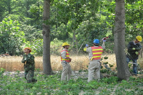 施工現(xiàn)場(chǎng)地形復(fù)雜,跨越路口8處、河線4處、通訊線光纜5處、10KV和0.4KV帶電線路7處,蝦塘10處。公司統(tǒng)一調(diào)度,分工協(xié)作,同步展開(kāi)。在施工現(xiàn)場(chǎng),指定了專(zhuān)職安全員,各道路、線路跨越處搭設(shè)了防護(hù)架,設(shè)置了臨時(shí)警示牌和警示欄,收緊線過(guò)程中進(jìn)行巡線,確保施工安全。中午,公司在淮鹽大酒店制作工作簡(jiǎn)餐,送到工地,施工人員抽空輪流進(jìn)餐后,就繼續(xù)接著施工,并一直忙到晚上9點(diǎn)。