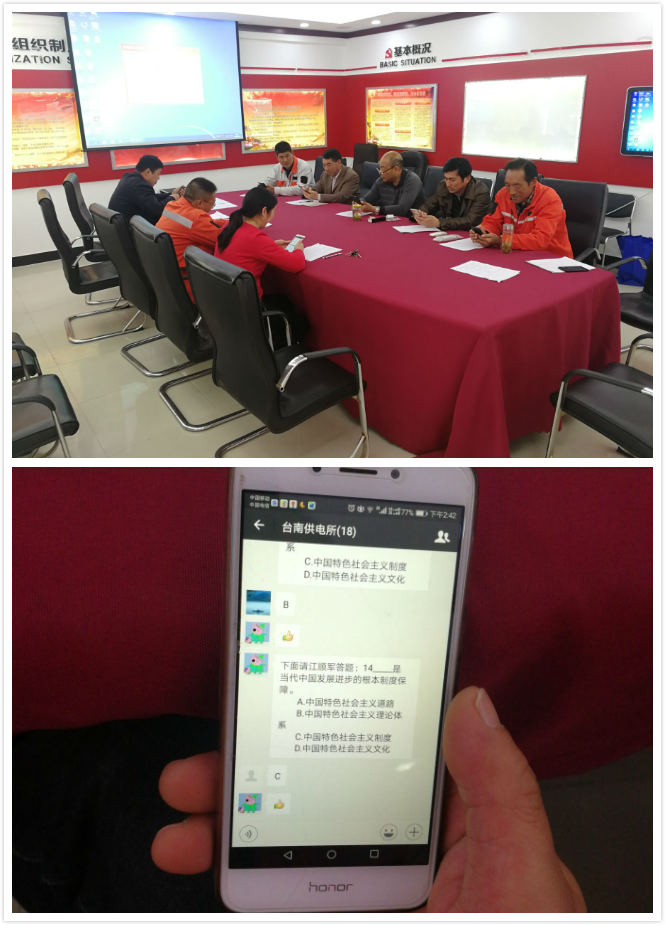 4月10日下午,臺南供電所全體黨員靜坐在會議桌旁,每人拿著一部手機,進行著一場特殊的考試。近年來,該所黨支部積極響應(yīng)公司黨委創(chuàng)新黨員教育管理舉措,利用微信公眾平臺,開展“掌上黨課”和“指尖上廉政教育”活動,學(xué)習(xí)黨的十九大精神,進行黨紀(jì)黨規(guī)知識測試,實現(xiàn)隨時、隨地、隨身,提升了學(xué)習(xí)教育成效。(劉繼美)