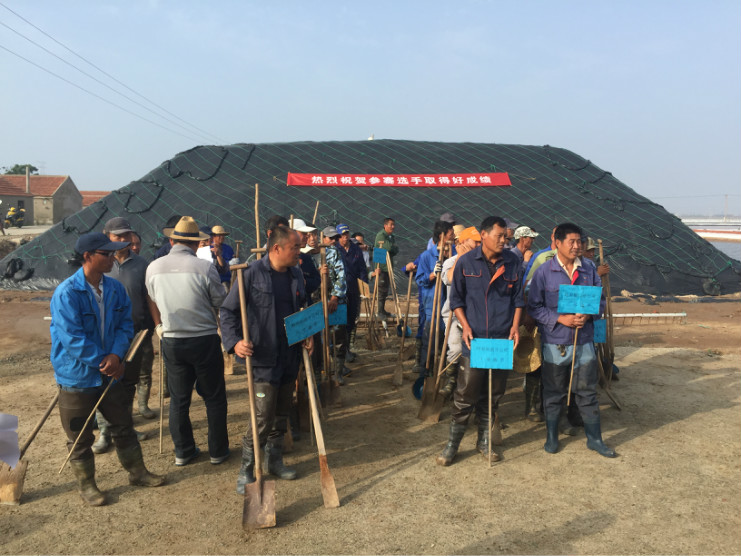 比賽開始前,生產(chǎn)服務(wù)公司經(jīng)理王緒前首先就天溝建設(shè)要求、評(píng)分標(biāo)準(zhǔn)等事項(xiàng)進(jìn)行了現(xiàn)場(chǎng)說明。7點(diǎn)20分,隨著裁判員的一聲令下,比賽正式開始。參賽選手們按照賽前抓鬮序號(hào),迅速投入到比賽中。賽場(chǎng)上,每一組選手都分工明確,澆水、翻泥、踩實(shí)、做埝、整平一氣呵成,大家都表現(xiàn)的極為熟練,充分展示了參賽選手扎實(shí)的基本功。比賽中,三位裁判在比賽場(chǎng)地來回巡查,認(rèn)真記錄每一組參賽選手的勞動(dòng)過程,力求做到公平、公正。9點(diǎn)20分,隨著最后一組選手的工作完成,比賽正式結(jié)束。隨即,三位裁判又根據(jù)比賽過程中的記錄情況結(jié)合最終工程質(zhì)量對(duì)每一參賽小組進(jìn)行綜合評(píng)分。最終,來自埒南制鹽分公司的章保衛(wèi)、高明成榮獲比賽第一名;江海兵、張春連以及尹步松、汪禮兵兩組選手榮獲第二名;新河制鹽分公司朱明、戴繼明,郁雷敏、李正軍,楊春旭、史春海三組選手榮獲第三名。