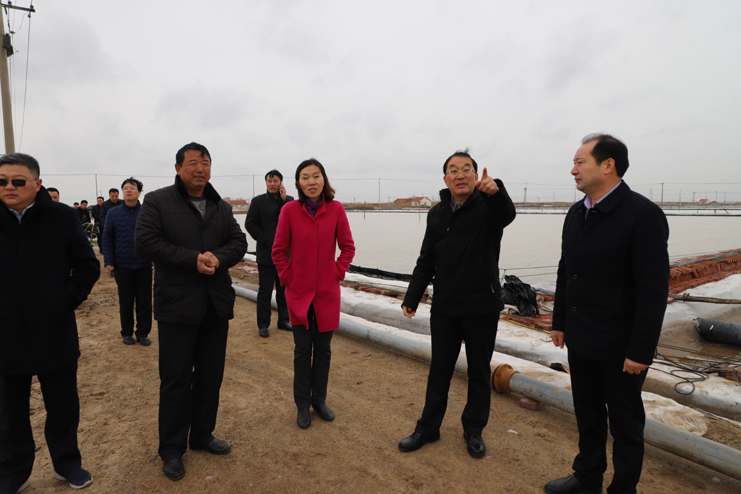 胡建明總經(jīng)理一行分別到原鈣液復(fù)曬區(qū)養(yǎng)殖池塘改造施工現(xiàn)場(chǎng)和新河制鹽分公司五班的扒鹽現(xiàn)場(chǎng)進(jìn)行實(shí)地調(diào)研,詳細(xì)了解工程的施工情況和日曬制鹽公司的生產(chǎn)情況。在原鈣液復(fù)曬區(qū),只見(jiàn)彩旗招展,幾臺(tái)挖掘機(jī)正在緊張施工之中,對(duì)灘地進(jìn)行養(yǎng)殖池塘改造,工程施工人員搶時(shí)間,抓進(jìn)度,爭(zhēng)取在養(yǎng)殖旺季來(lái)臨之時(shí),完成工程施工投入養(yǎng)殖生產(chǎn)。日曬制鹽公司目前已經(jīng)出動(dòng)五臺(tái)扒鹽機(jī)組投入到春季扒鹽工作中來(lái),預(yù)計(jì)上半年將完成25萬(wàn)噸的扒鹽任務(wù)。隨后在機(jī)關(guān)三樓會(huì)議室召開(kāi)流動(dòng)辦公會(huì),投資公司董事長(zhǎng)李國(guó)文對(duì)灌西投資公司和日曬制鹽公司的生產(chǎn)經(jīng)營(yíng)情況進(jìn)行了匯報(bào)。他表示,2018年,灌西投資公司將積極迎接挑戰(zhàn),以“三超兩增一確保”為工作目標(biāo),產(chǎn)鹽58萬(wàn)噸,實(shí)現(xiàn)綜合利潤(rùn)翻一番工作任務(wù)而努力奮斗。同時(shí)也提出,公司當(dāng)前面臨原料礦鹵要漲價(jià)、原鹽一線員工年齡老化、職工小區(qū)房產(chǎn)證協(xié)調(diào)辦理等諸多發(fā)展難題,希望集團(tuán)公司領(lǐng)導(dǎo)給予高度重視。集團(tuán)公司領(lǐng)導(dǎo)相繼發(fā)言,現(xiàn)場(chǎng)辦公,針對(duì)各類問(wèn)題分別進(jìn)行了研討,提出建議,解決問(wèn)題。