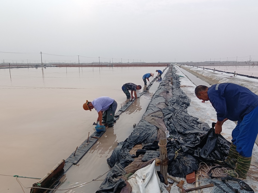 隨著主汛期到來,由于各班組部分塑布已達(dá)使用年限,老化嚴(yán)重,且容易造成鹵水跑漏現(xiàn)象發(fā)生,為了減少鹵水損耗,7月10日,新河制鹽分公司黨支部組織黨員突擊隊(duì)到班組對(duì)到期塑布進(jìn)行更換。