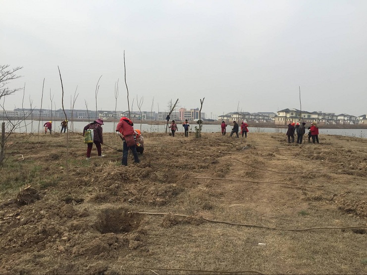 3月29日,南翼綠化公司100余名工人在大棚湖周邊開展植樹造林活動。