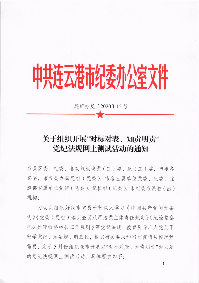 關(guān)于組織開展“對標對表、知責明責”黨紀法規(guī)網(wǎng)上測試活動的通知