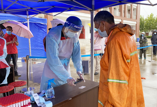 在公司與社區(qū)聯(lián)合開展的核酸檢測(cè)中,盧庠瑞整整站了一天,幾公里外,他的父親同樣沖在了疫情防控最前線。盧庠瑞告訴我們,“雖然在不同‘戰(zhàn)場’,但我和爸爸都覺得能為防疫出一份力,很光榮?!?/span>