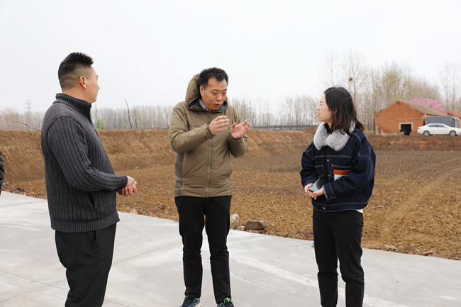 4月2日上午,冒著淅瀝瀝的春雨,青口公司副總經理許太冬帶領樊家選、趙華兵兩位技術指導小組成員,來到海頭鎮(zhèn)龍河村新復墾的240畝土地現場,與結對聯建的龍河村村委成員熱切交流,為新復墾的土地發(fā)展規(guī)劃出謀劃策。