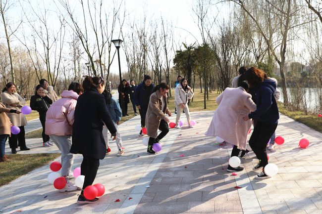 為使大家身心得到最大放松,投入戶外體驗(yàn)清新大自然,在絲路小鎮(zhèn)公園進(jìn)行了“三月女人天 別樣?jì)D女節(jié)”主題戶外活動(dòng)。游戲“你畫我猜”中,隊(duì)員們有的配合默契一猜既中,也有的用肢體艱難的比劃著,引的大家捧腹大笑。“踩氣球”游戲更是讓現(xiàn)場(chǎng)氣氛達(dá)到沸點(diǎn),每人都放開平日工作中的嚴(yán)謹(jǐn),放松心情在場(chǎng)地上追逐奔跑。大家在游戲中收獲了歡聲笑語(yǔ)及片片感動(dòng),同時(shí),通過(guò)游戲提高大家的合作意識(shí)和進(jìn)取精神,營(yíng)造濃郁節(jié)日氣氛。