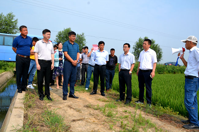 王董事長一行先后到大新農場農業(yè)生產現(xiàn)場、糧食倉儲項目、生態(tài)種養(yǎng)中心、勞模示范養(yǎng)殖池塘、小附河亮化工程現(xiàn)場、鹽田玉展銷中心、廉政文化廣場等地進行了考察調研。
