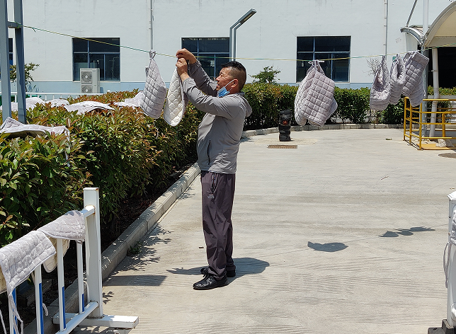可是最近他有點不高興。幾次大浦片區(qū)在公司門外舉行的核酸檢測,因為時間不湊巧,他總是當(dāng)不了“大白”。丁師傅是個閑不住的人,這不,夏天到了,食堂坐墊不用了,該洗了,丁師傅說,我來吧,咱當(dāng)不了“大白”,就當(dāng)“小白”吧。于是,說干就干,端午節(jié)后的周三上午將幾十個坐墊拿走認真洗了一番,晾到三號廠房邊上的架子上,下班前收好送到辦公室,他說,等到晚秋,還要將坐墊綁到餐桌椅子上,“咱老同志做事要有始有終嘛”。(規(guī)劃發(fā)展部