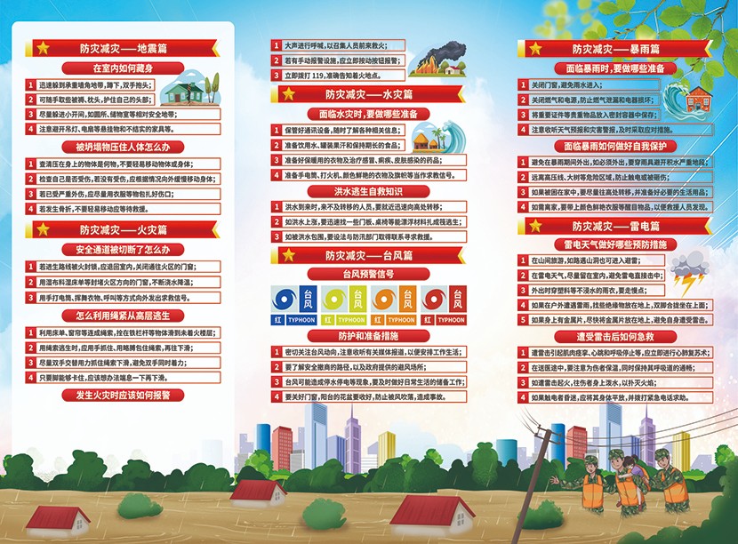 5月12日是我國第17個(gè)全國防災(zāi)減災(zāi)日。今年防災(zāi)減災(zāi)日主題是:“人人講安全、個(gè)個(gè)會(huì)應(yīng)急——排查身邊災(zāi)害隱患”,5月12日至18日是防災(zāi)減災(zāi)宣傳周。