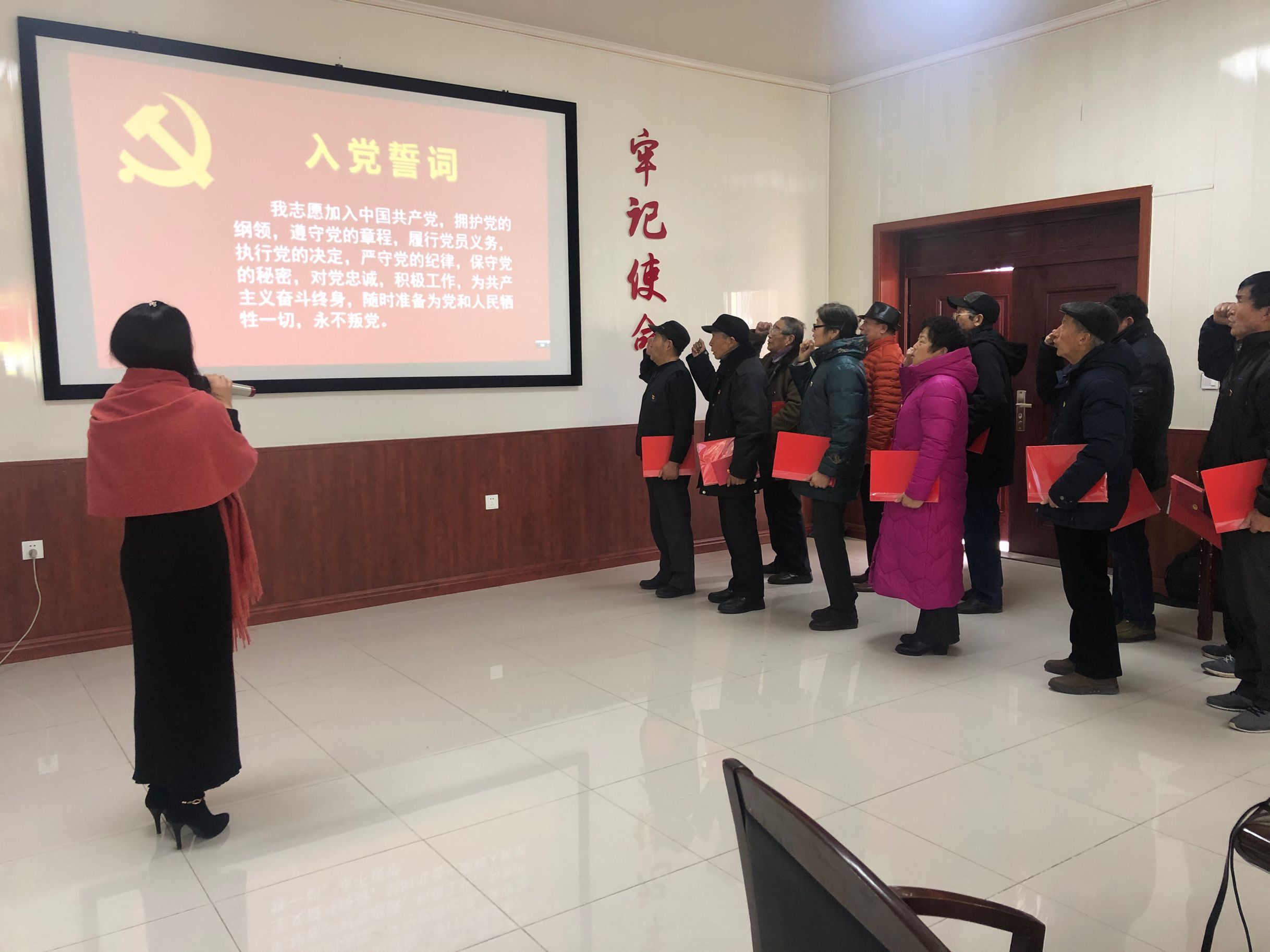 老黨員同志們站在鮮紅的的黨旗前,舉起右手宣誓“我志愿加入中國共產(chǎn)黨,擁護黨的綱領(lǐng),遵守黨的章程………”一字一句鏗鏘有力、滿懷激情,都為自己身為一名黨員而驕傲。三名老黨員分別分享了自己的初心故事,張鳴鵬的五百元“慰問金”,郁正凡的10萬余字的手抄黨章,他們的故事都讓聽眾動容,掌聲不斷。