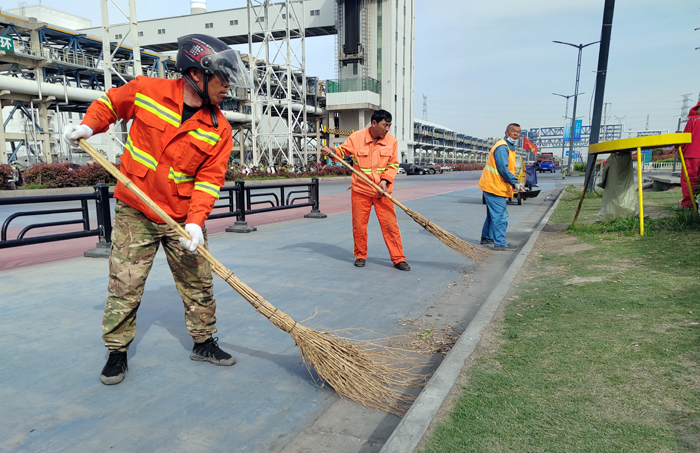保潔保障“步調(diào)一致”。為完成徐新路、徐圩大道、海濱大道等石化園區(qū)多條道路保障任務(wù)。130余名保潔先鋒輪流轉(zhuǎn),每日清掃輔道路修剪石楠等樹(shù)葉雜草落葉路線1500、清洗站臺(tái)座椅40余個(gè)、清掏果皮箱130余個(gè)、轉(zhuǎn)運(yùn)生活垃圾300、打包轉(zhuǎn)運(yùn)商鋪垃圾150余車(chē),為保障節(jié)日期間道路保潔鍥而不舍。