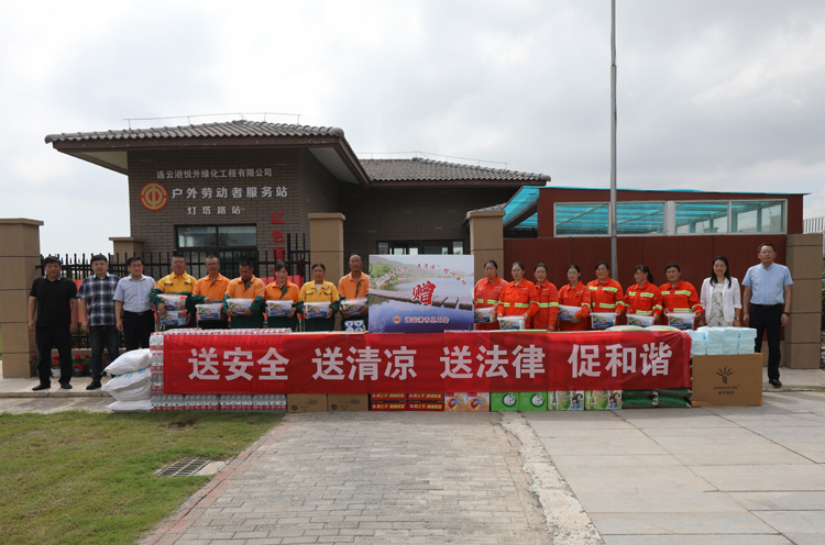 ????? 8月4日上午,市總工會(huì)副主席王悅到連云港綠化工程公司基層班組開展“送安全、送清涼、送法律”活動(dòng),走訪慰問堅(jiān)守在高溫作業(yè)現(xiàn)場(chǎng)的市政養(yǎng)護(hù)職工,在送去防暑藥品、涼茶、礦泉水、綠豆、白糖、毛巾等防暑降溫物品的同時(shí),為他們送去絲絲涼意和誠(chéng)摯的關(guān)懷。
