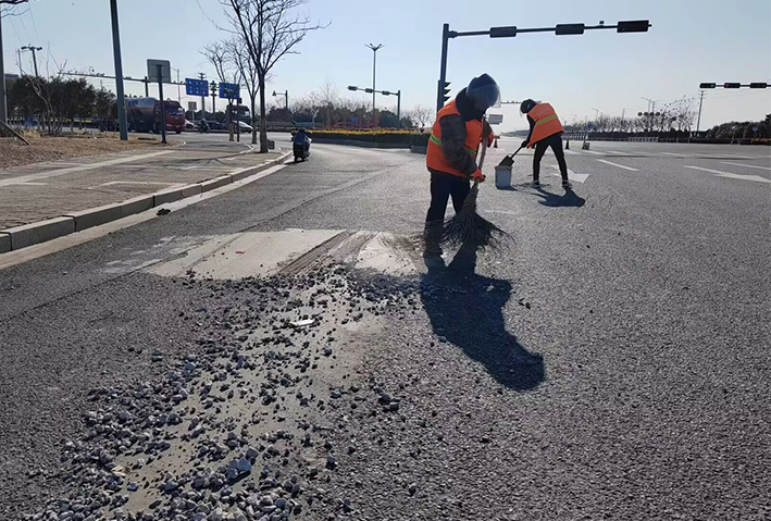 燈塔路路口,巡查人員發(fā)現(xiàn)大面積車輛拋灑物,生產(chǎn)骨干張學(xué)軍、徐習(xí)東、陸永柱接到公司應(yīng)急處理電話第一時(shí)間趕赴現(xiàn)場(chǎng),盡管天氣寒冷,但是大家干的熱火朝天,共清理泥塊30多處,長(zhǎng)達(dá)800多米長(zhǎng);轉(zhuǎn)運(yùn)石子、石塊50多車,他們?cè)俅斡眯袆?dòng)彰顯黨員示范風(fēng)采。